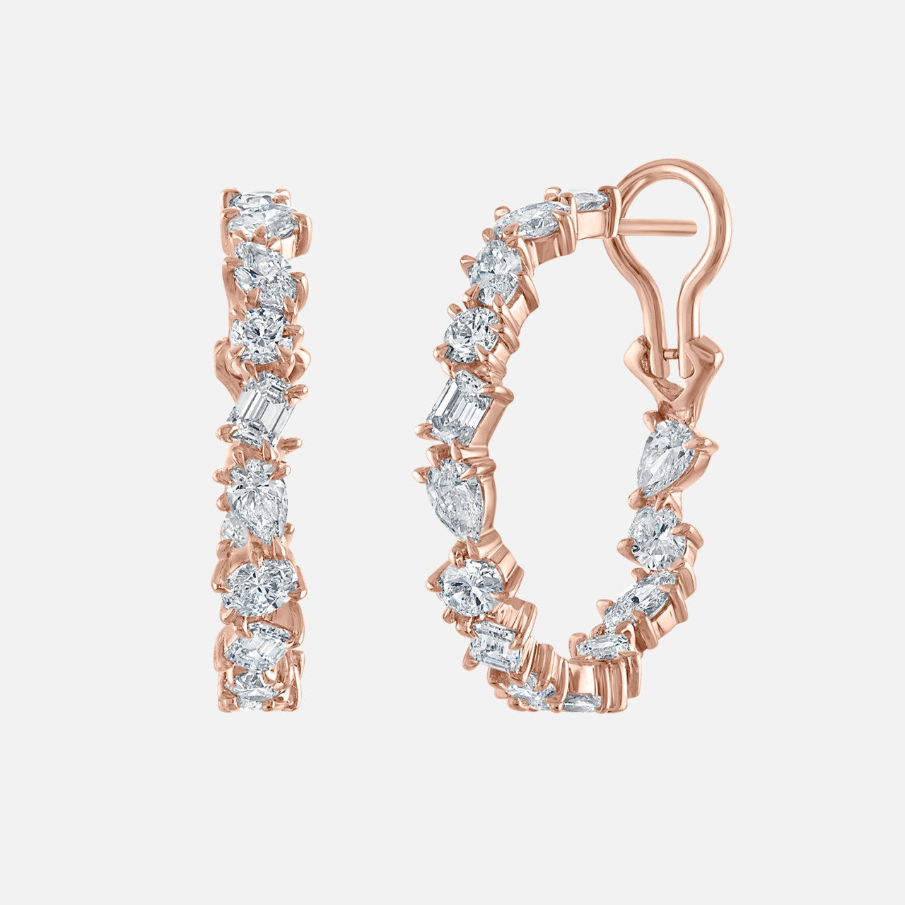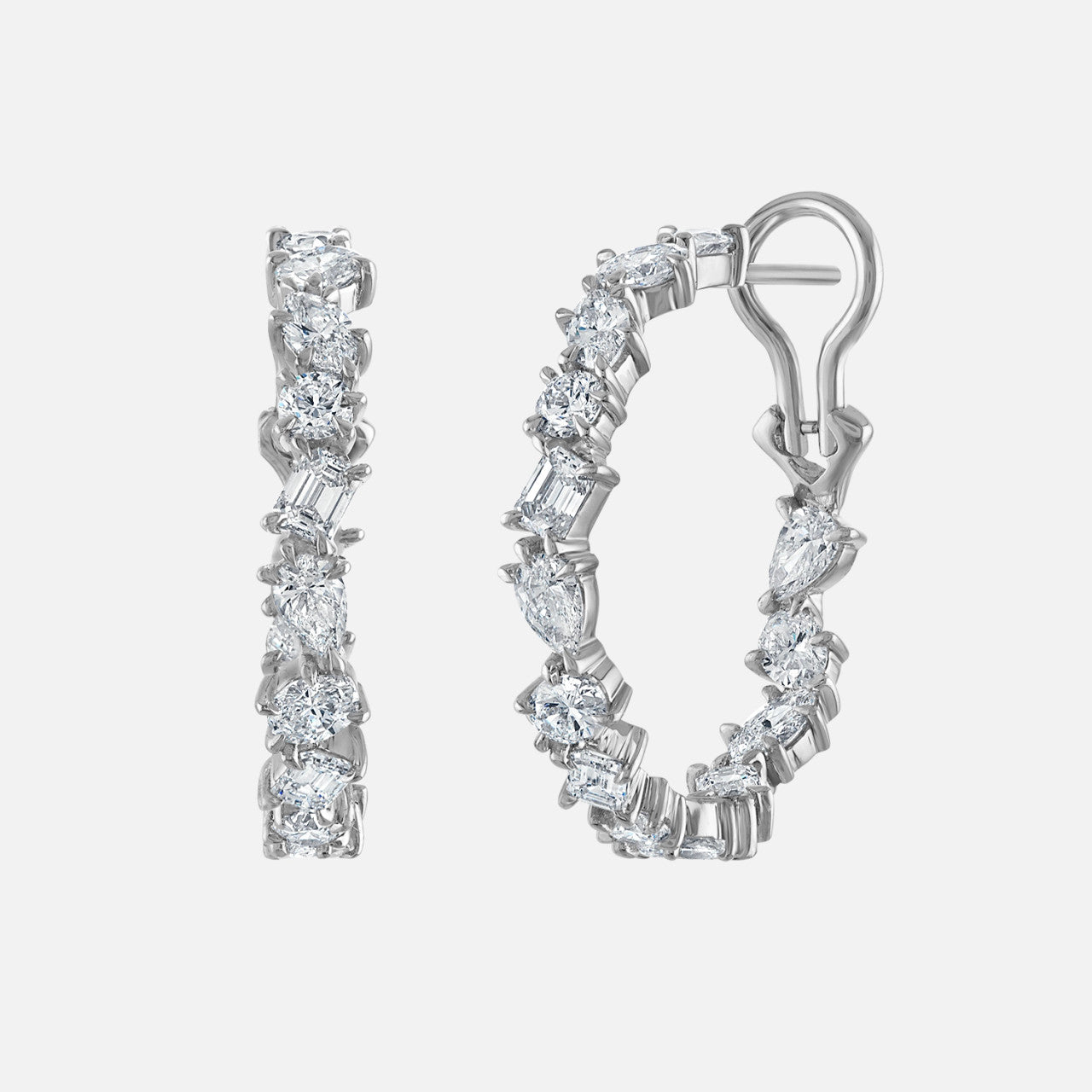 Learn moreThese hoop earrings display 28 mixed-shaped natural diamonds facing inside and out.