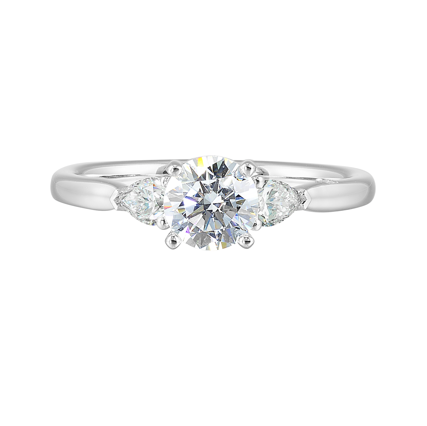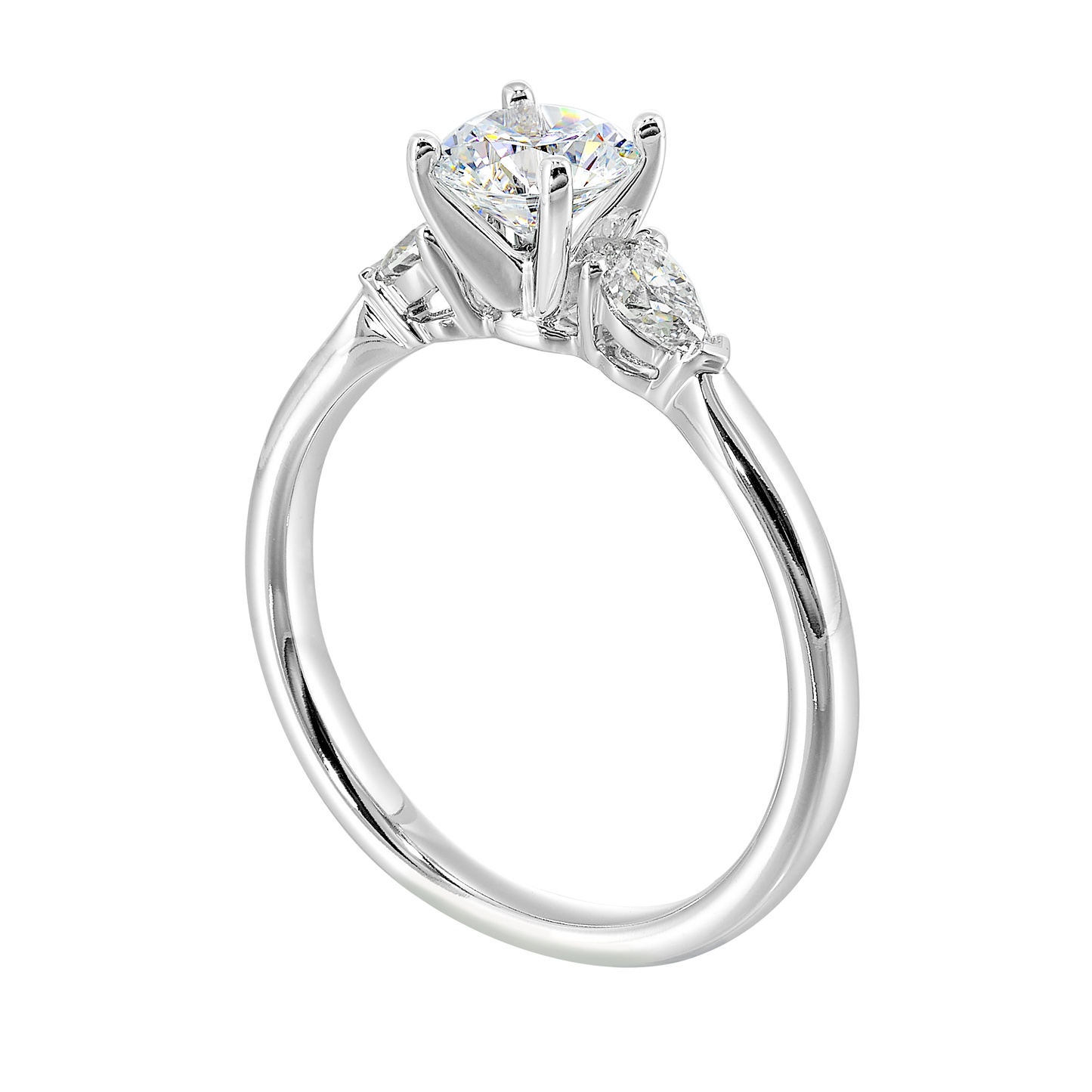 Learn moreThis 14k white gold semi-mount is designed to hold a round center diamond and features two marquise diamond accents, one on each side.