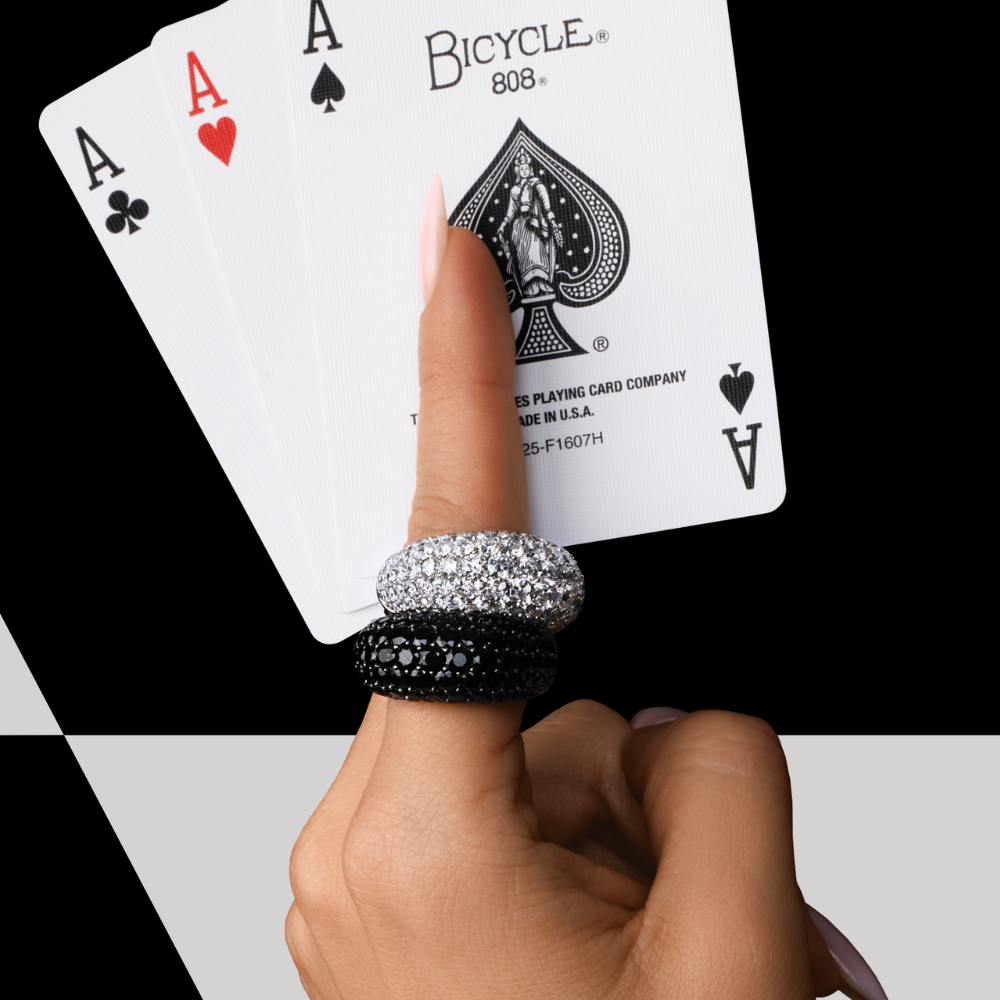 Learn moreThis 18k white gold bubble ring features round white diamonds.