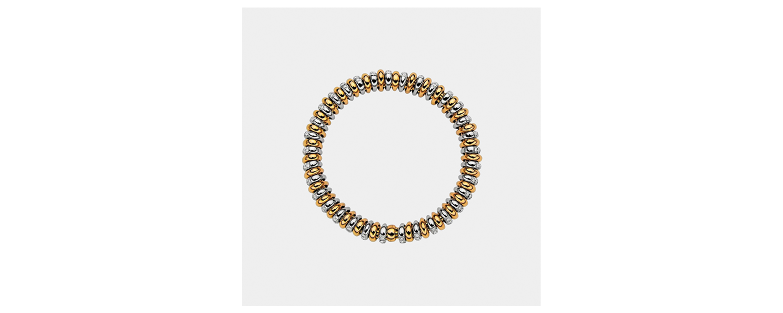 Fope Vendôme Bracelet: This flexible Vendôme bracelet in 18k yellow and white gold showcases 1.66 carats of diamonds and pairs well with any layered bracelet look.