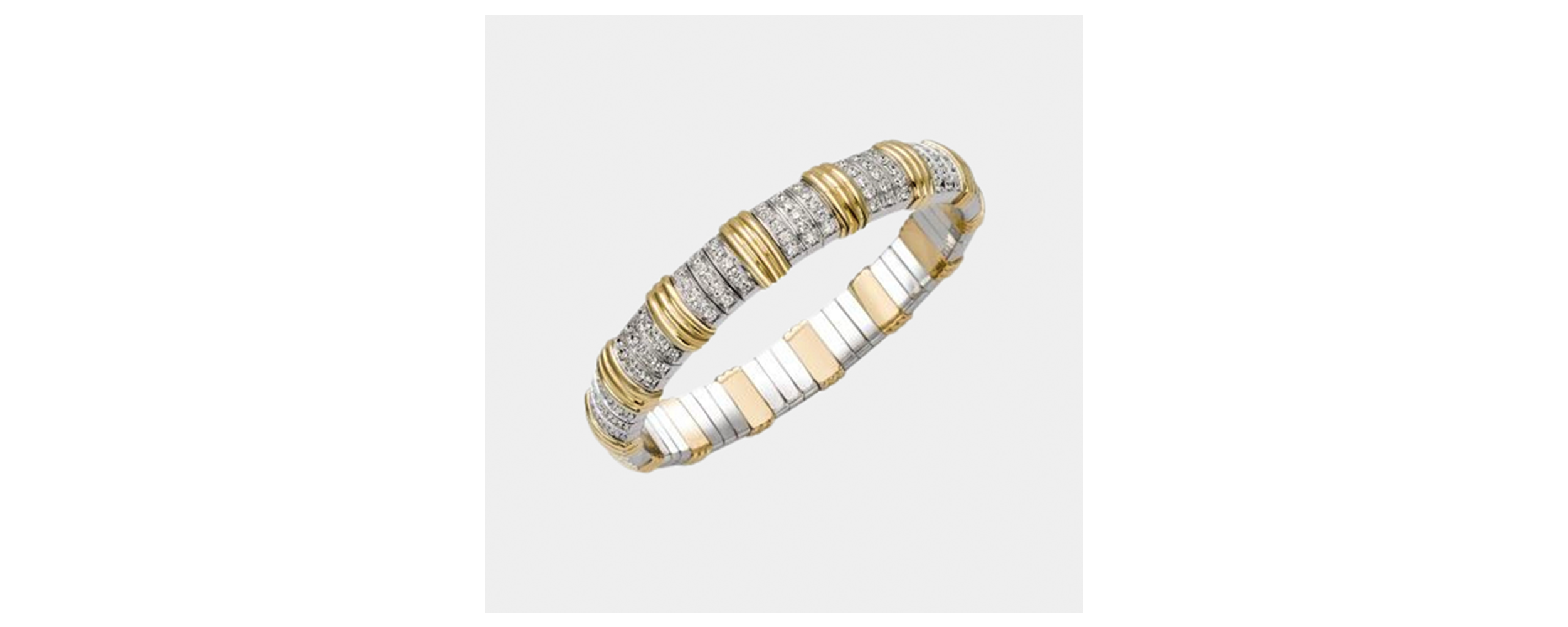 Picchiotti Xpandable Golden Accent Bracelet: This stretchable bracelet features a combination of white and yellow gold, accented with 210 round diamonds.