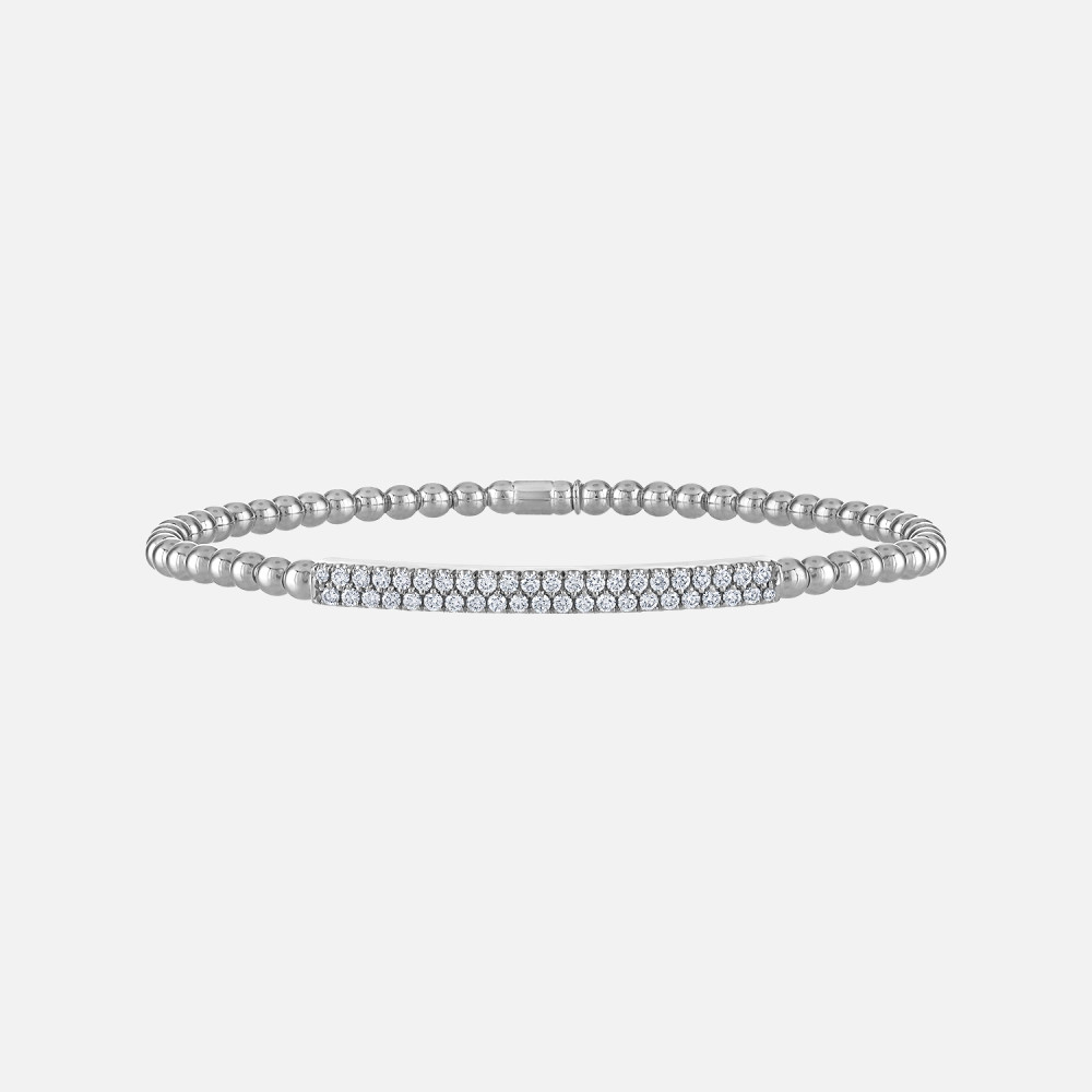 This stretch beaded bracelet features a bar with two rows of diamonds, with a total of 44 round natural diamonds.