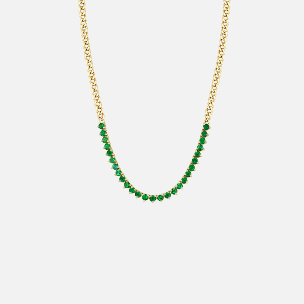Emerald Tennis Segment Small Curb Chain Gold Necklace