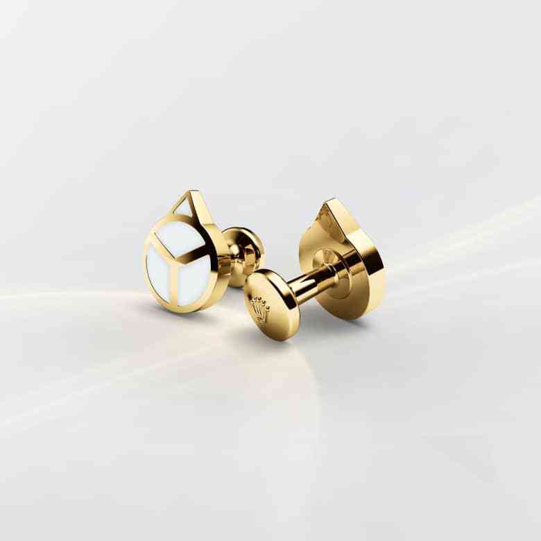 Always shining Rolex cufflinks made of 18 ct yellow gold that echo the hour hand found on Professional Rolex watches, equipped with a Chromalight display.