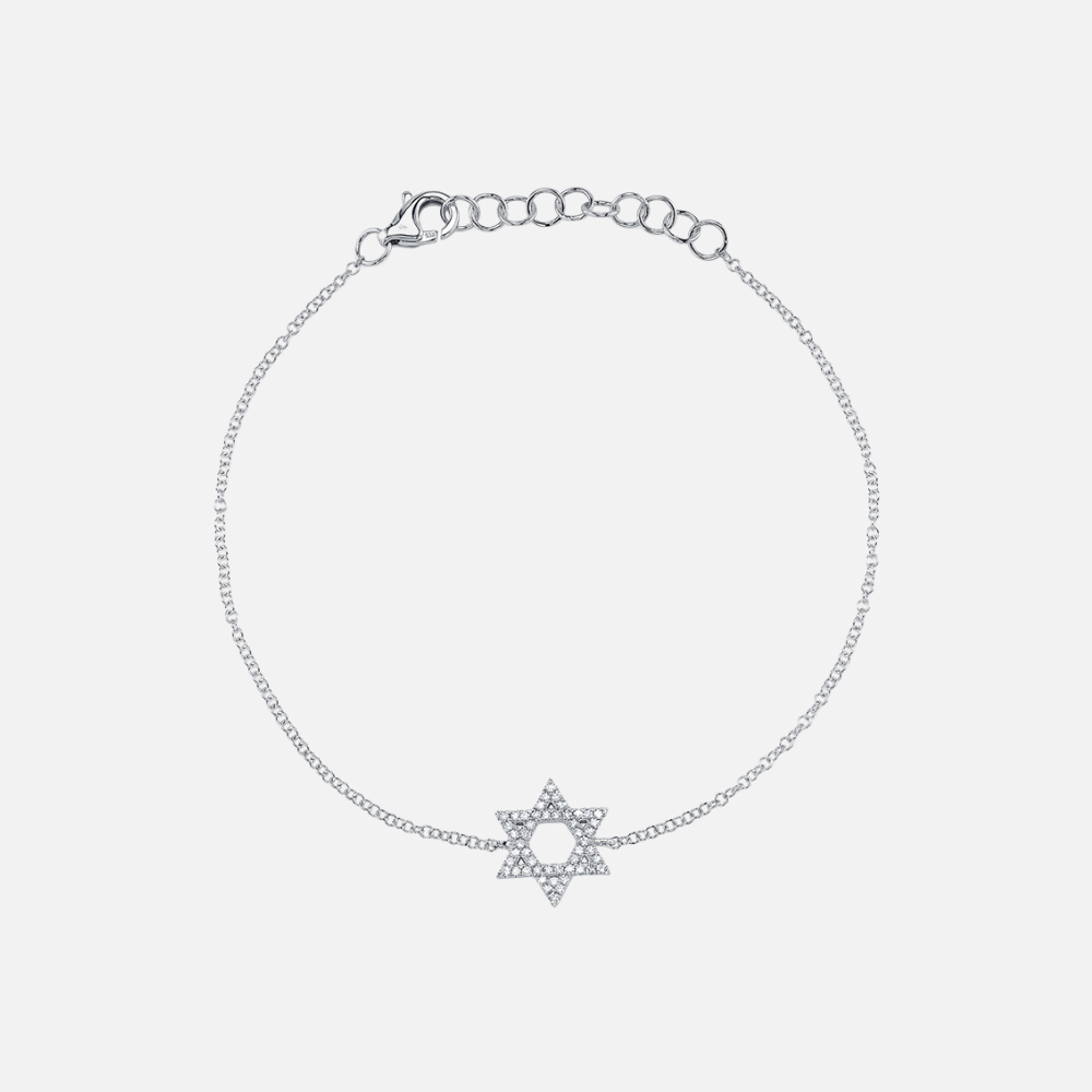 This 14k white gold bracelet features a Star of David design with 48 round natural diamonds.