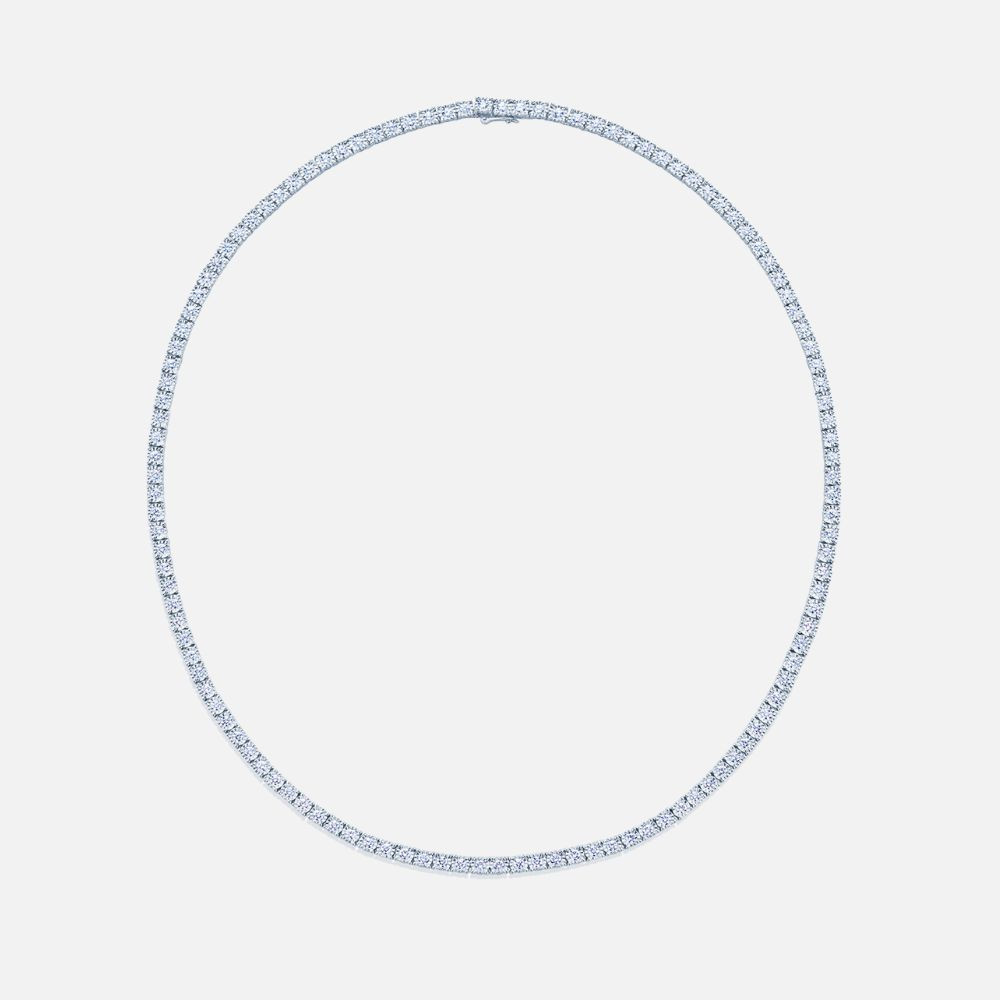This white gold diamond line necklace from the Sunburst collection showcases 125 round brilliant natural diamonds in crimped bezels to enhance their sparkle.