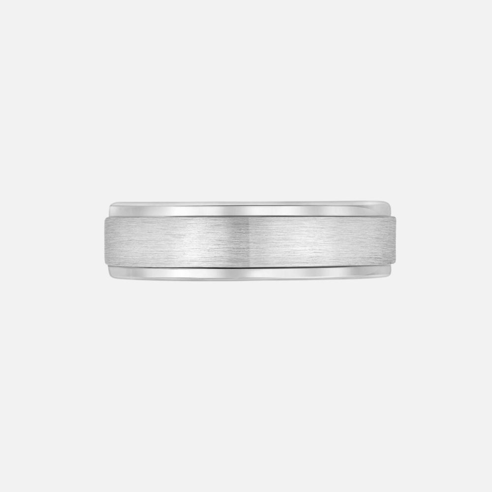 White Gold Sandpaper Center with High-Polish Sides Band